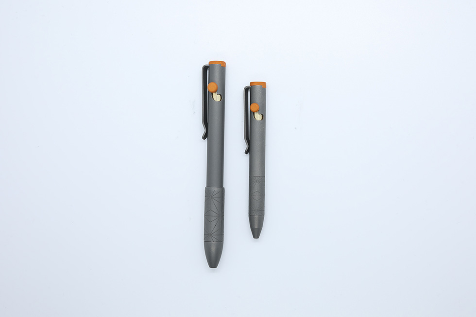 As mentioned before, one of BIGiDESIGN’s focuses when they design a new pen is that it can accept many, many, many different pen ink refills. Maybe we include an orange gel ink cartridge, just for fun? No, we wanted to make these functional. And what’s more functional than a cartridge that can be used by astronauts in space? The Large model gets the legendary German-made stainless steel Schmidt MegaLine pressurized ink refill (and the Mini gets German-made stainless steel Schmidt 635 Mini D1 ink refill). Not only can the pressurized cartridge work upside down or in zero gravity, but it can also handle extreme temperatures and can even write underwater thanks to the oil-based ink. Ultimate ink cartridge? Check.