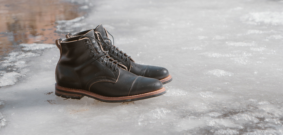 Available in Black Horween Chromexcel with black hardware and black Ironlace laces.