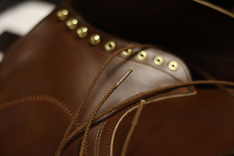 Available in British Tan Horween Chromexcel with brass hardware and brown Ironlace laces.